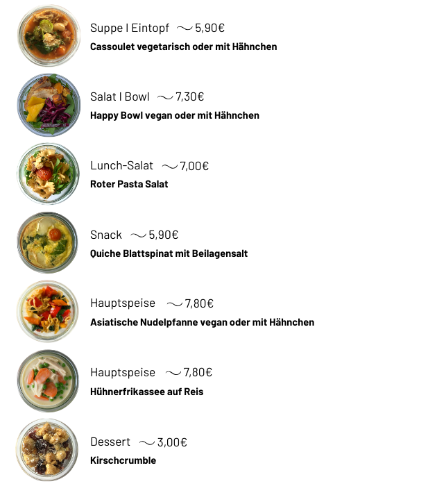 Angepasst an Saison & Produktverfügbarkeiten stellen wir jede Woche eine neue Speisenauswahl zusammen, die den kleinen & großen Hunger stillt und Appetit auf mehr macht.